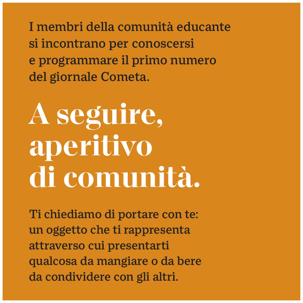 L'incontro è aperto a tutti coloro che vogliano contribuire al dibattito cittadino sui temi dell'educazione. Ci auspichiamo pertanto la partecipazione di insegnanti, genitori, membri delle organizzazioni di volontariato, singoli cittadini. Cometa è un progetto selezionato dall'Impresa sociale Con i Bambini nell'am bito del bando per le comunità educanti.